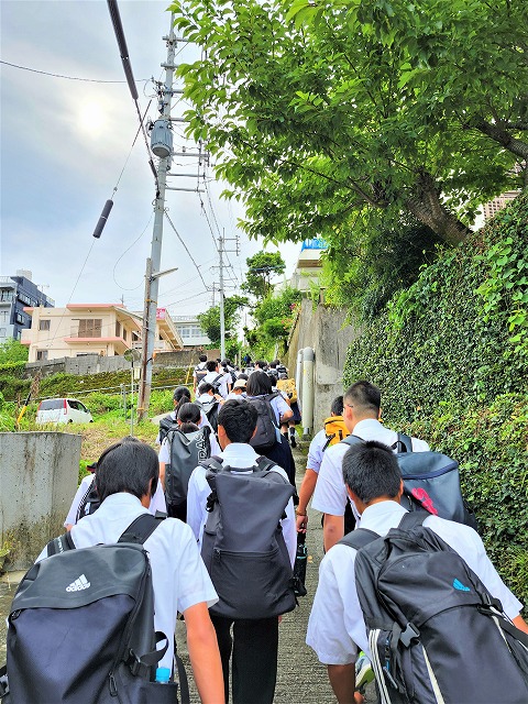 5月12日(日)から2泊3日の行程で沖縄に修学旅行に行ってきました。1日目は「平和学習」に「民泊」、2日目は「マリン・文化体験」、3日目は「班別自主研修」と盛沢山な内容でしたが、天候にも恵まれ、無事全プログラムを消化できました。生徒たちは2泊3日の活動を通して仲間との友情を深め、地元の方々の優しさにも触れ、とても有意義な時間を過ごしました。また、親元を離れ、保護者の皆様への感謝の気持ちも感じられた貴重な旅行でした。体験で得た多くの学びを、生徒たち一人ひとりが、これからの学校生活に繋げてくれることを期待しています。この度の旅行にあたり、保護者の皆様にいただきましたご支援ご協力に感謝申し上げます。