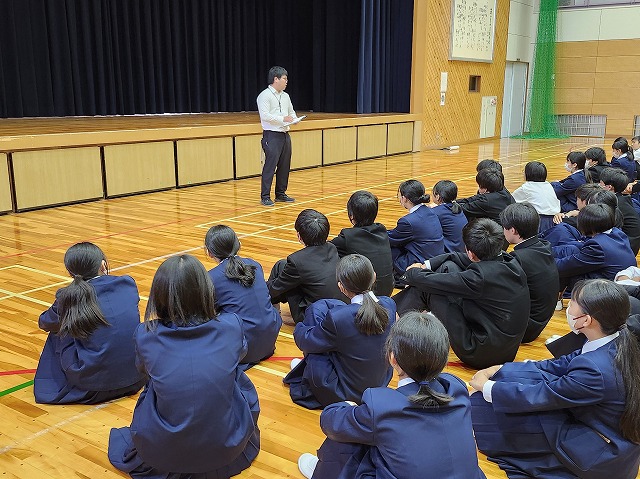 23日(木)のテスト終了後、不審者の校内侵入を想定し、防犯訓練を実施しました。今回は不審者が職員玄関から侵入したという設定で実施しましたが、広大な敷地を持つ東中学校です。その気になって入ろうと思えばどこからでも侵入できます。あってはならないことですが、いつ何時、想定外の出来事が発生するかわかりません。繰り返し行う訓練を通して、自分自身で危険を回避できる力を身につけてほしいものです。