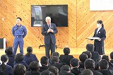 最後に、酒井市長さん、消防本部の方にお越しいただき、「防火ポスターの表彰」がありました。お忙しい中、東中学校まで来ていただき、ありがとうございました。
