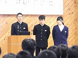 3月3日(火)、全校集会を実施しました。先輩からバトンを受け継いで初めての全校集会でしたが、新三役の落ち着いた進行で、クイズなどの工夫もあり、とても充実した集会になりました。これからの生徒会活動がますます楽しみになりました。