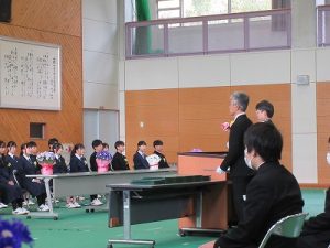 本年度の卒業生は、生徒会テーマに「信和(しんわ)」を掲げ、伝統の「すれちがい挨拶」を自ら実践し、誰に対しても心を開く温かい校風を築いてくれました。「神話」とも重なるそのテーマ通り、新しい時代の1ページを刻む素晴らしい活躍を見せてくれました。