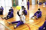 12月11日(木)の第1回では、学年の枠を超えてコミュニケーションを図り、人間関係を深めることを目的に、縦割り班で“シッティングバレー”を行いました。